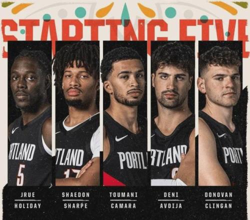 人员配置方面,本赛季开拓者使用的首发五人组为克林根、卡马拉、夏普、阿夫迪亚、霍乐迪,四场比赛全部沿用这套首发阵容,场均搭配出场9.1分钟在全联盟所有首发阵容中排名第33,如此低排名的时长也说明这套阵容化学反应比较一般。