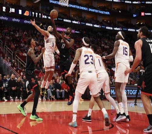 火箭先发:杜兰特、史密斯、亚当斯、伊森、阿门!太阳先发:狄龙、奥尼尔、威廉姆斯、布克、吉莱斯皮!