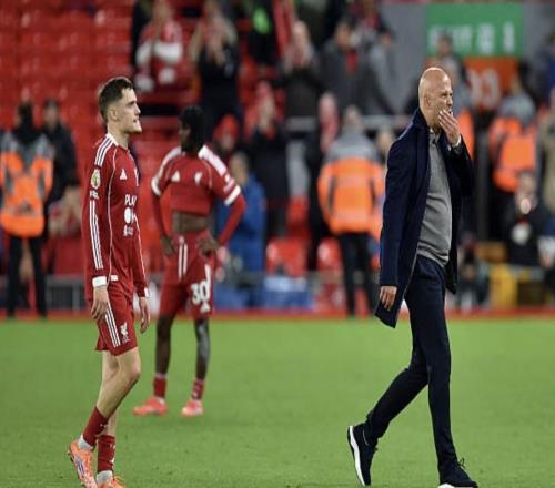 记者:利物浦输球后,仅斯洛特和三位球员留下来感谢球迷 -
