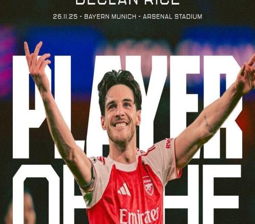 覆盖全场,赖斯当选与拜仁一役阿森纳队内最佳球员 -